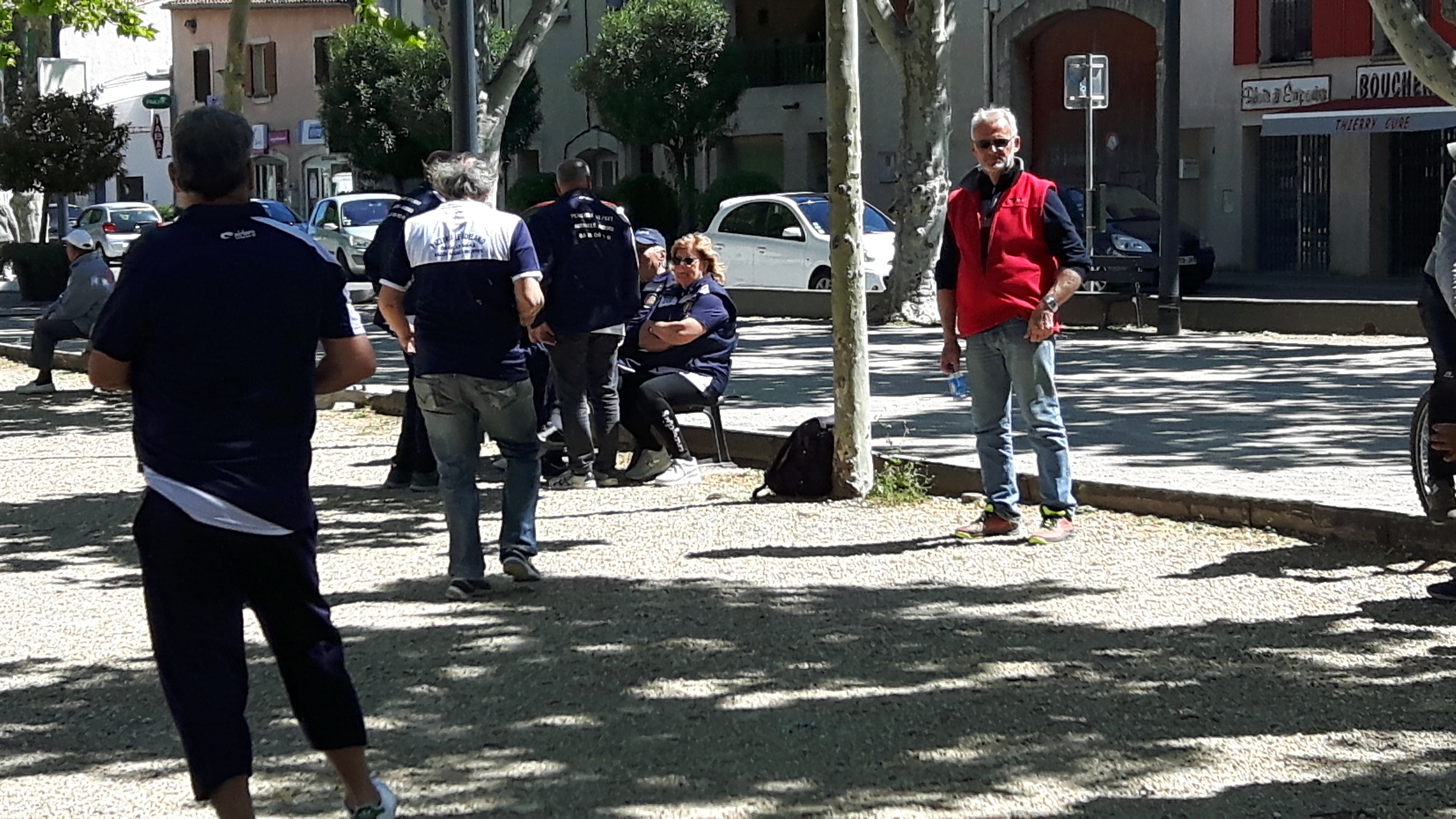 Initialement prévue à 14 h le rencontre a commencé vers 16h30 sous les platanes de Bernis. Martine, Jean-Luc, Raymond, Didier, Robert, Alain L, Georges et Jean constituaient l’équipe d’Aubord. Nous avons gagné 2 tat, 2 doublettes et une triplette et donc la rencontre s’est soldée sur un match nul 18 à 18.